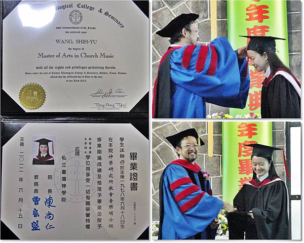 2012年6月15日,我終於穿上碩士服,從台灣神學院教會音樂碩士班畢業了!
